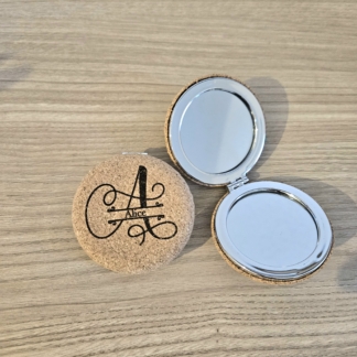 Specchietto da borsa rotondo in sughero Con Iniziale e nome