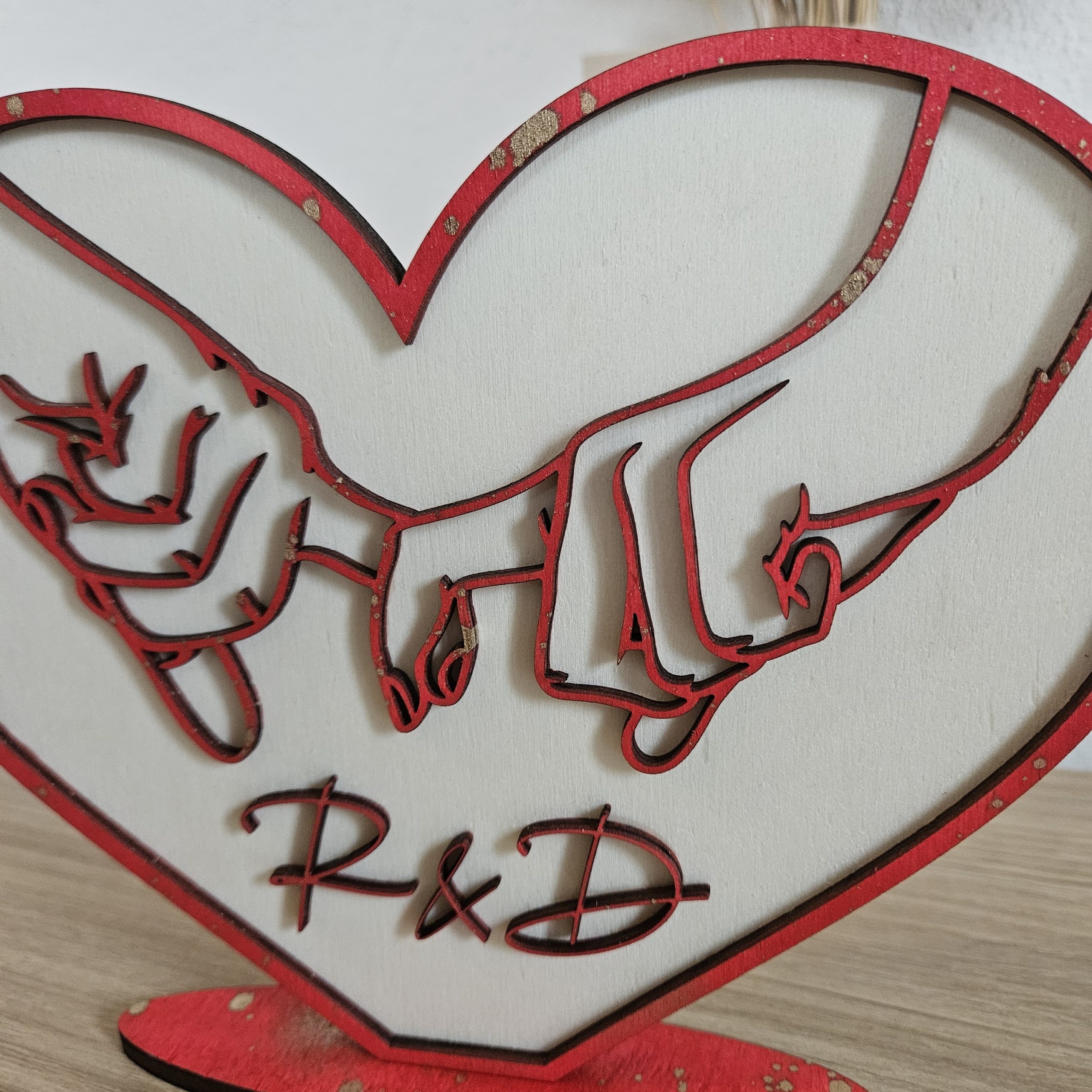 La decorazione Cuore Innamorati con mani e iniziali in rilievo è pensata per chi ama circondarsi di messaggi d’amore semplici ma significativi.