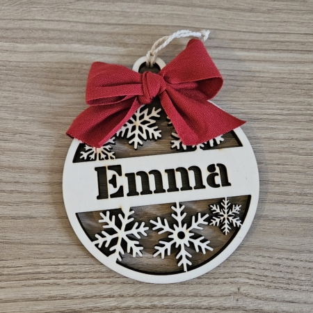Pallina di Natale con nome intagliato e fiocco