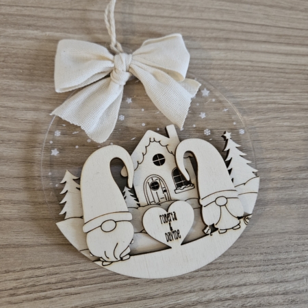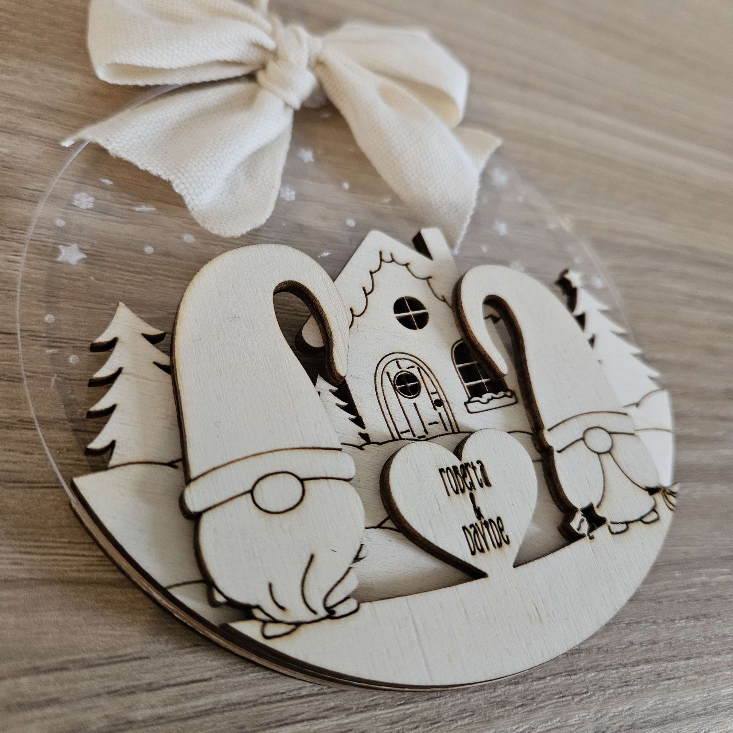 Disponibilitá: DISPONIBILE | Codice Prodotto: 8V3WZDecorazione per albero di Natale elegante e raffinata in legno e acrilico trasparente inciso con gnomi e nomi incisi ! Ideale per dare un tocco chic al vostro albero