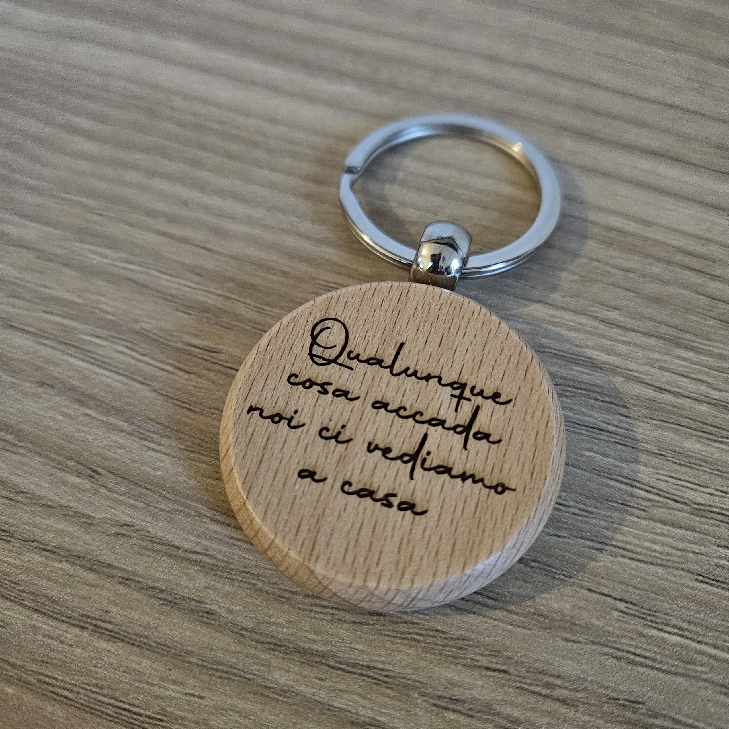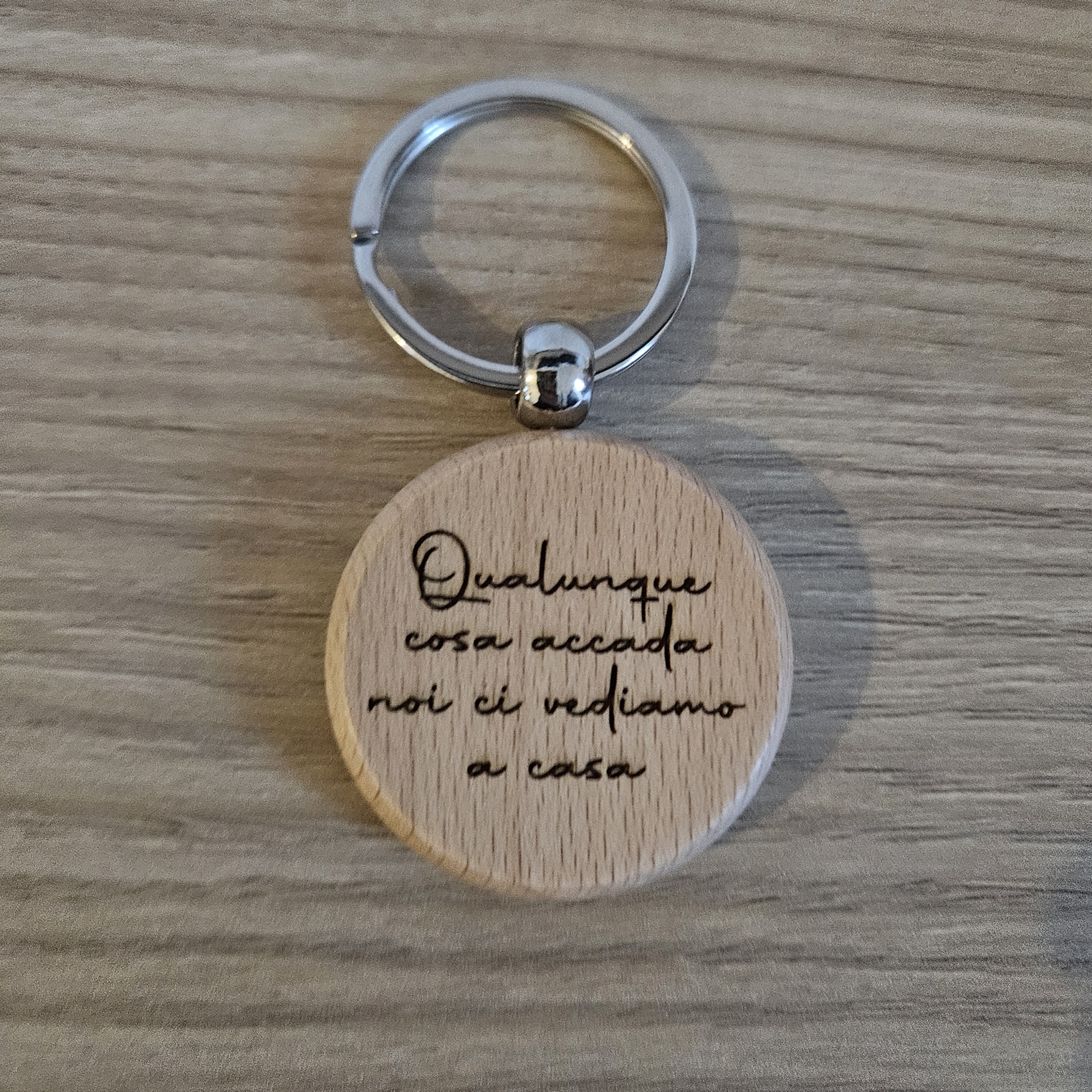 Portachiavi in Legno di Faggio rotondo “Qualunque cosa accada noi ci vediamo a casa”